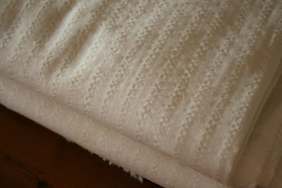 I thought this fabric was just so beautiful. I have been thinking of making a white dress for a while, but had neither the perfect pattern or fabric. Now I have the fabric. It is a lovely weight and has a beautiful lined detail.